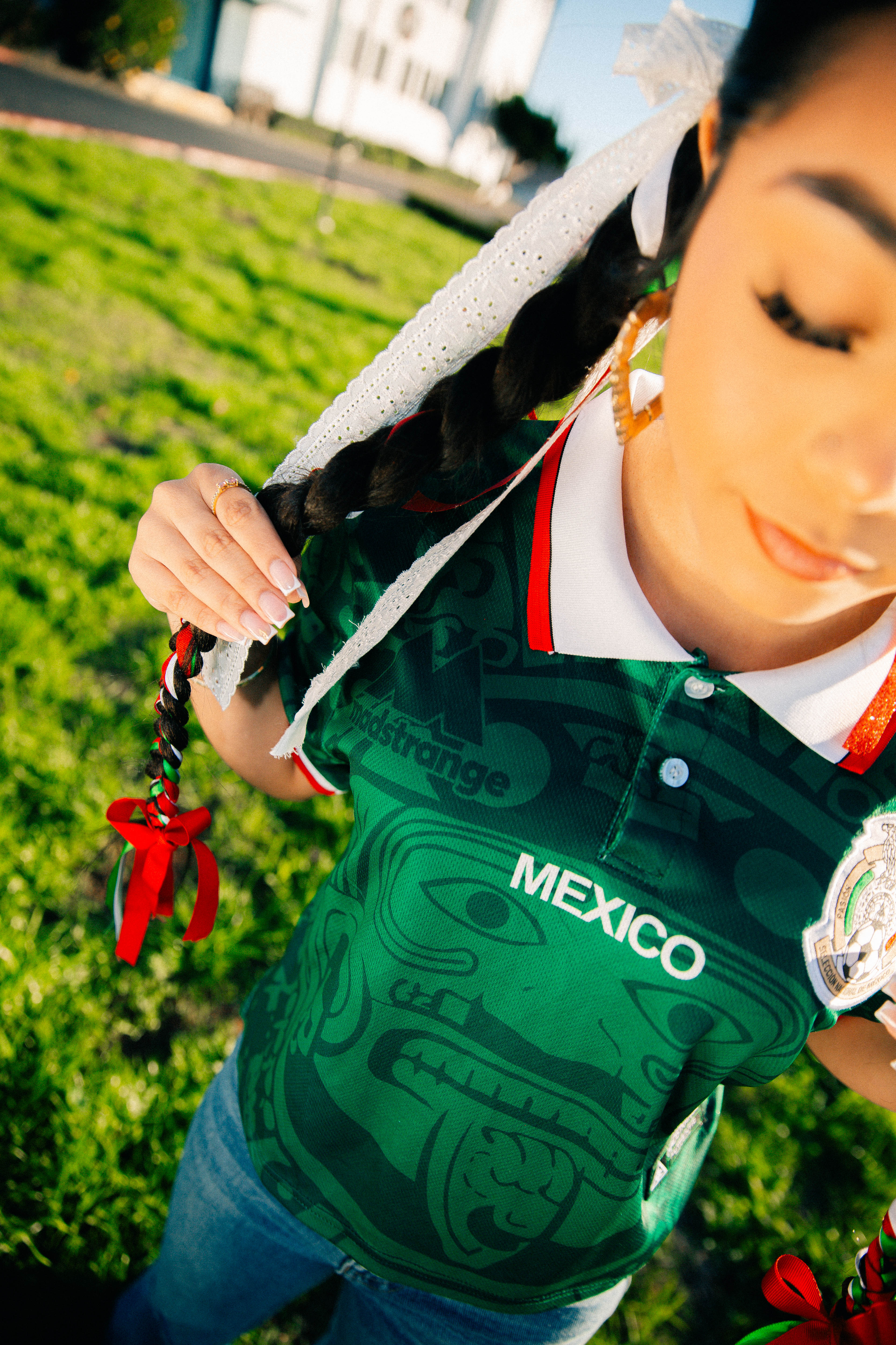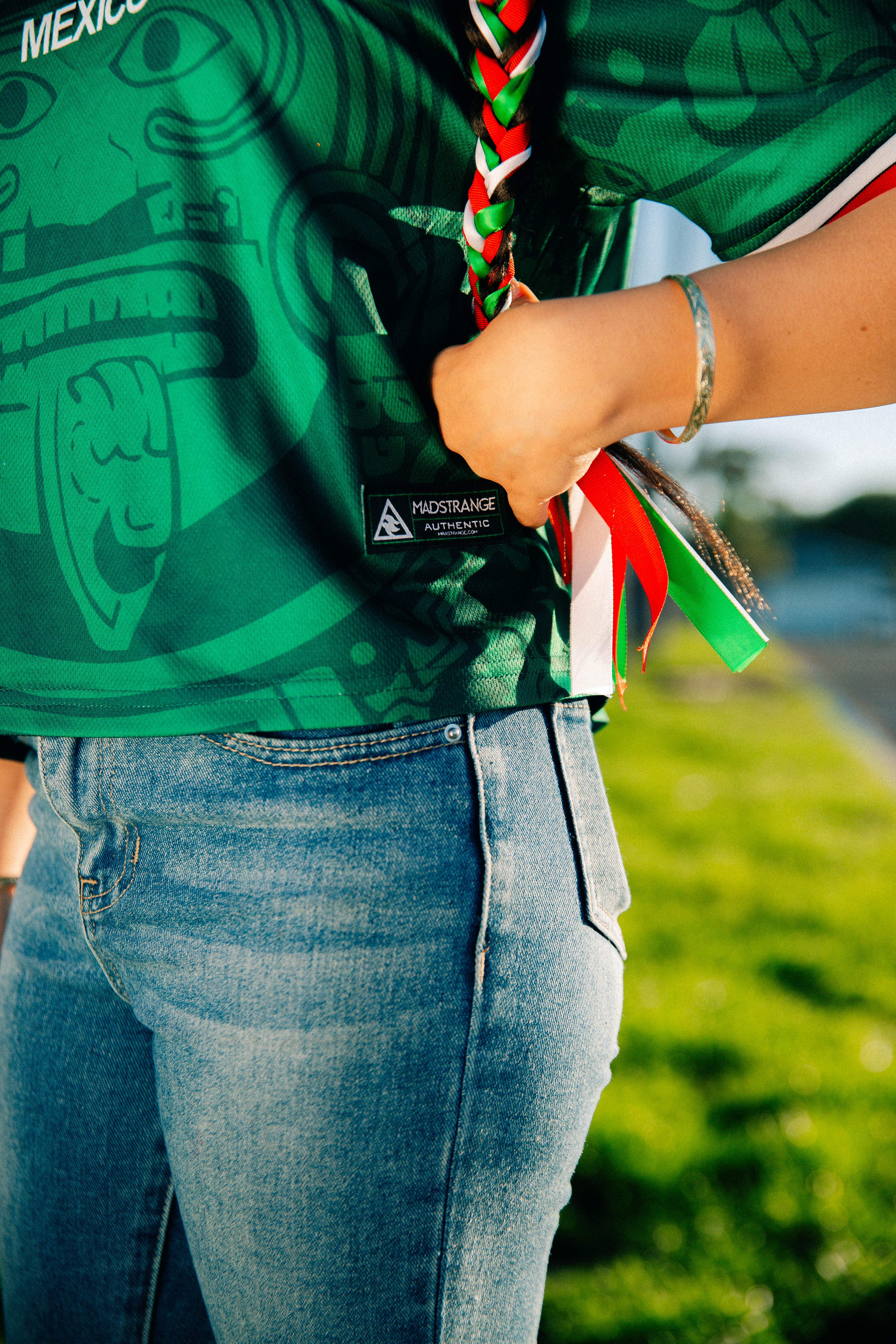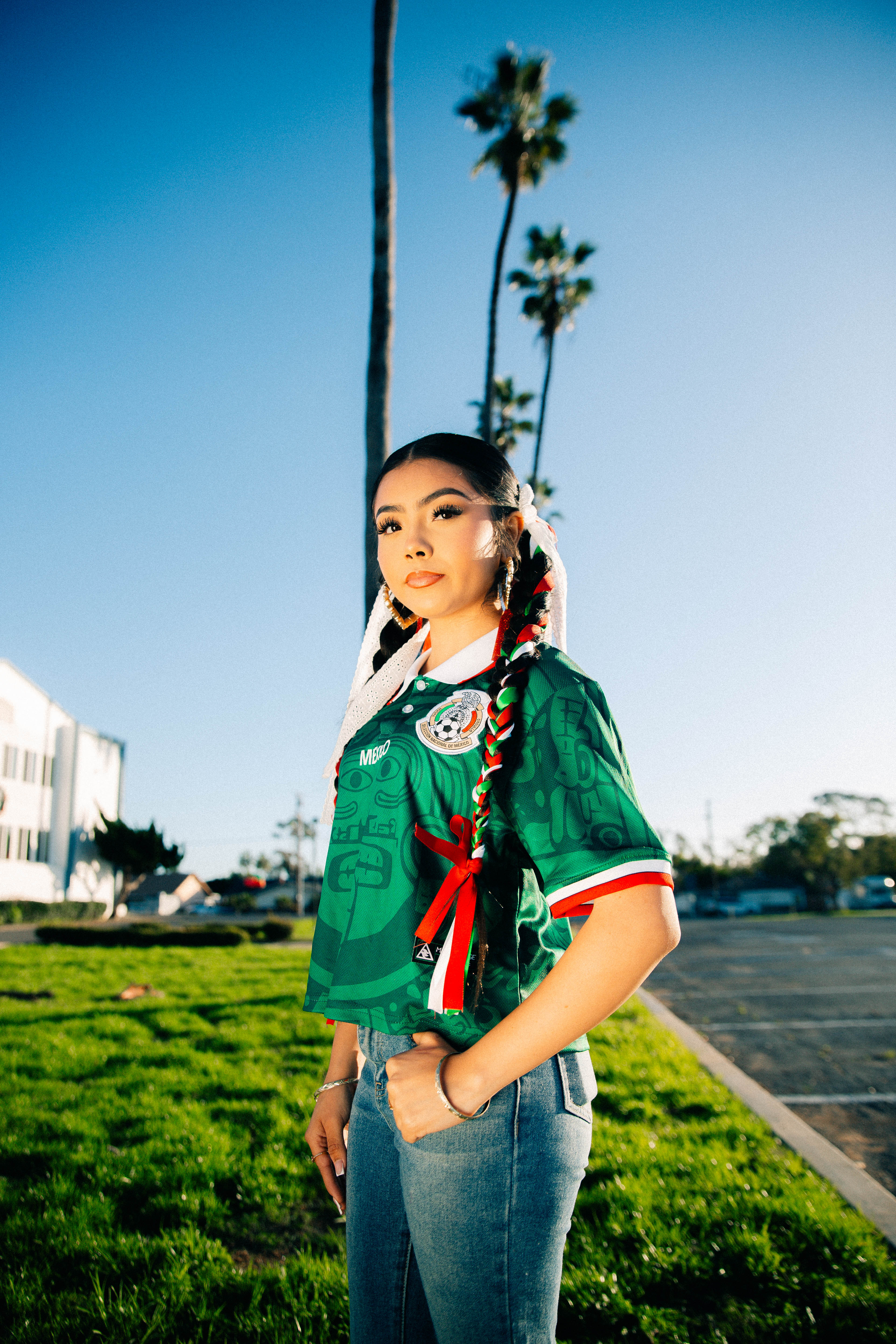 The cropped cut gives it a modern edge, while the deep green color and subtle details pay tribute to Mexican heritage. Pair it with high-waisted jeans, joggers, or a jersey skirt—this top moves how you do.