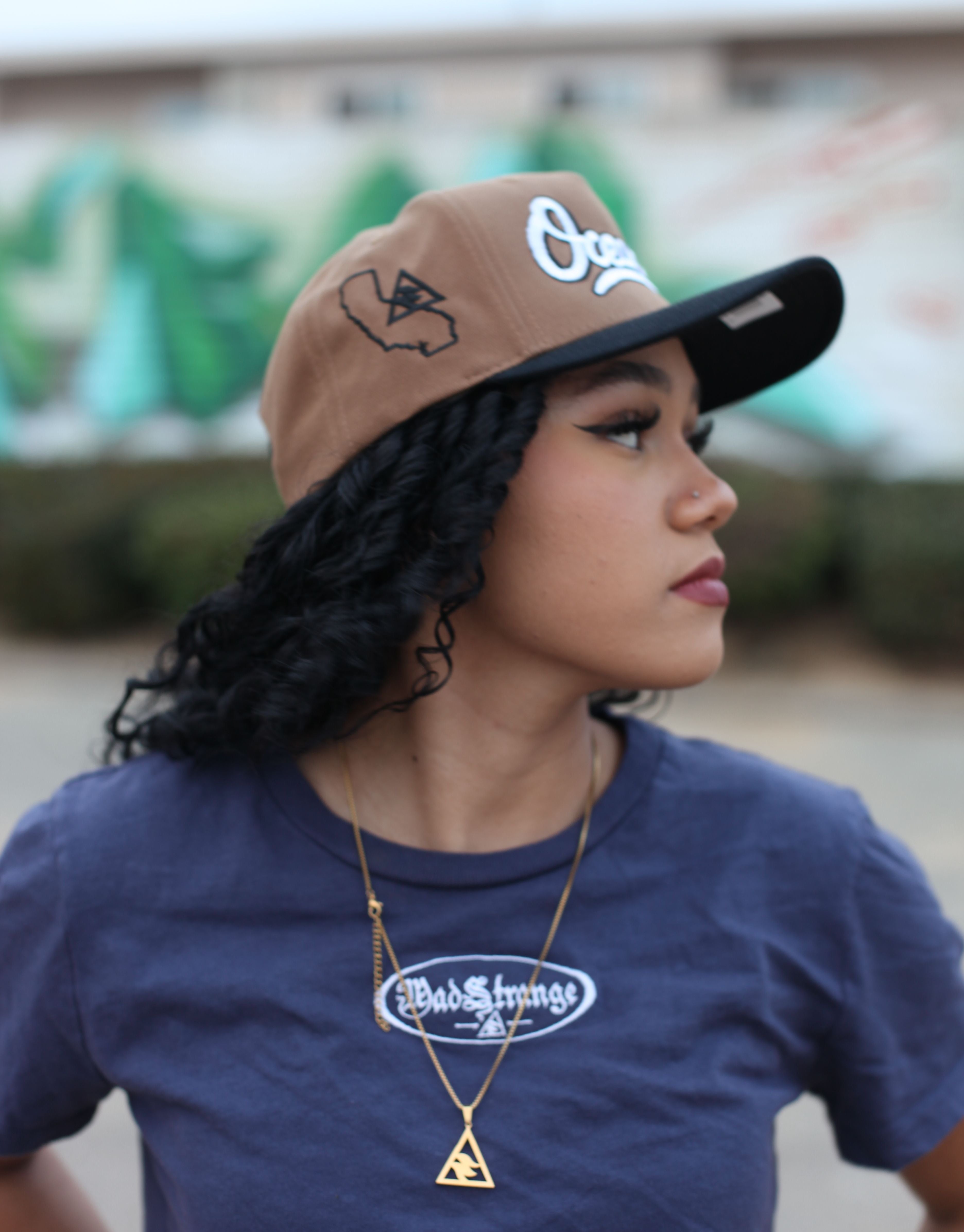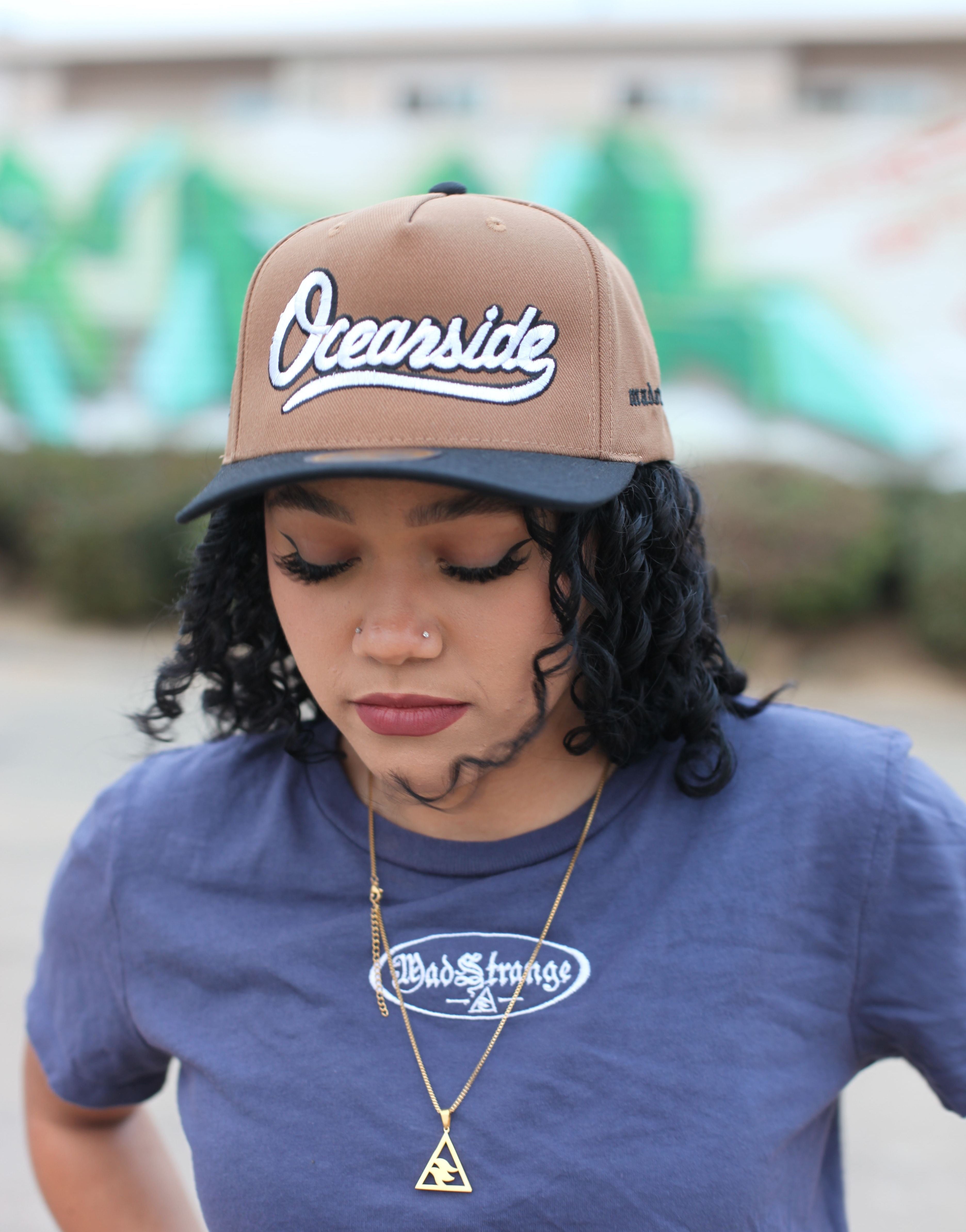 The Classic Oceanside Hat combines bold style with subtle detailing, featuring the MadStrange triangle with California state embroidered on the right side for a signature touch. With a classic snapback design that fits most and a sleek black under brim, this hat brings comfortable, coastal-inspired style to any outfit.