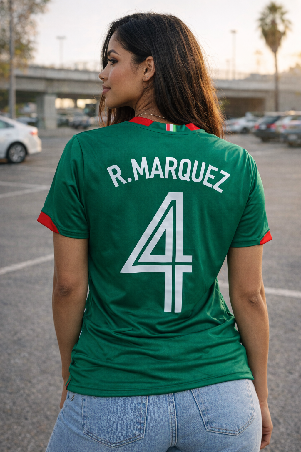 Inspired by the iconic Mexico national team style, this white fan jersey features a clean design with a white Aztec-inspired chest stripe and classic number detailing. Made from lightweight 100% polyester dri-fit material, it helps wick away moisture to keep you cool and comfortable whether you're watching the game, playing soccer, or wearing it casually. A timeless soccer look built for everyday wear.