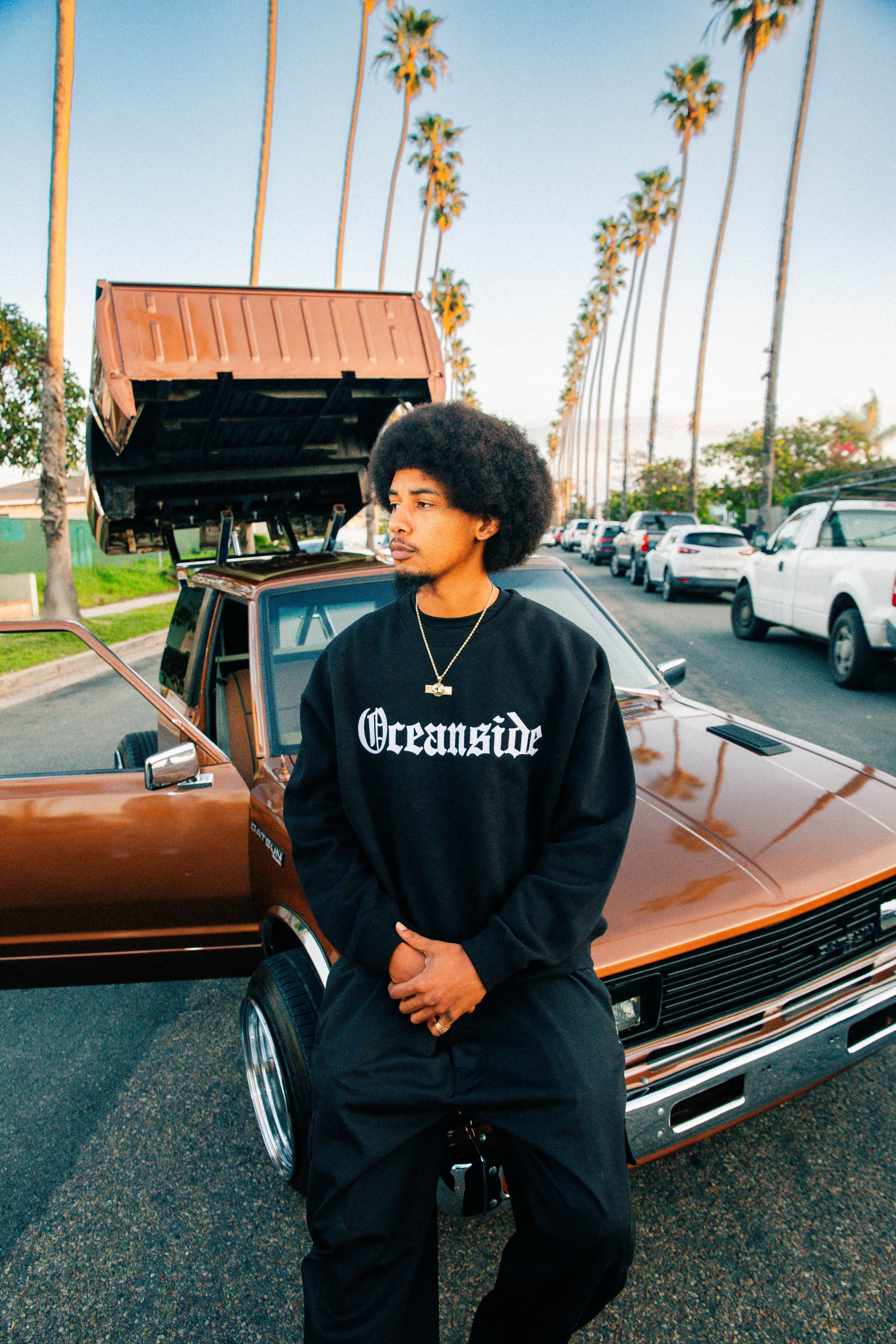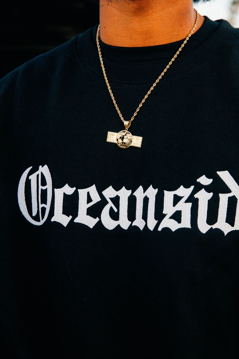 Made on the heavyweight Pro 5 blank, this Black crewneck features “Oceanside” embroidered in striking white Old English font across the chest — a clean, timeless design that pays homage to SoCal’s iconic coastal city.