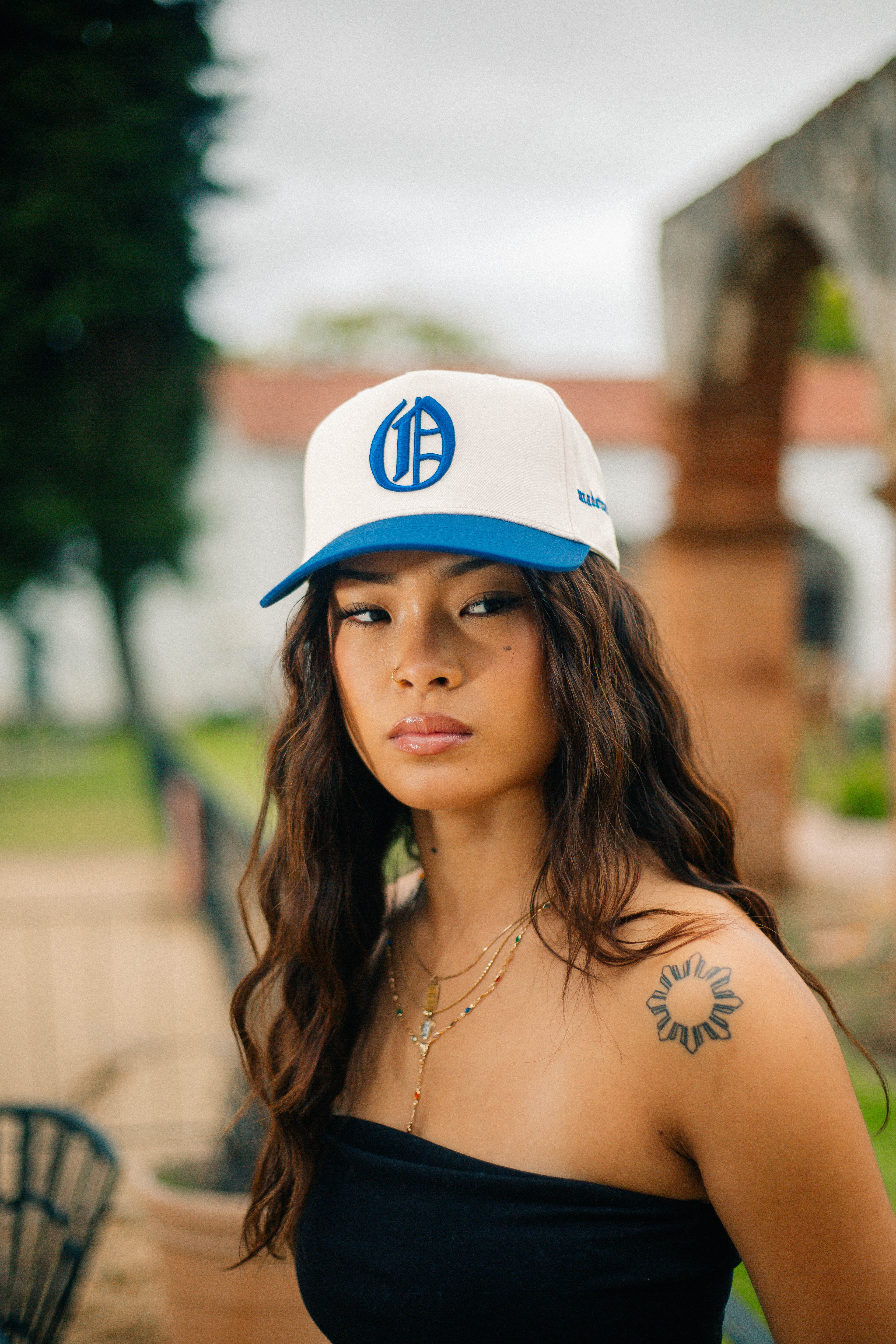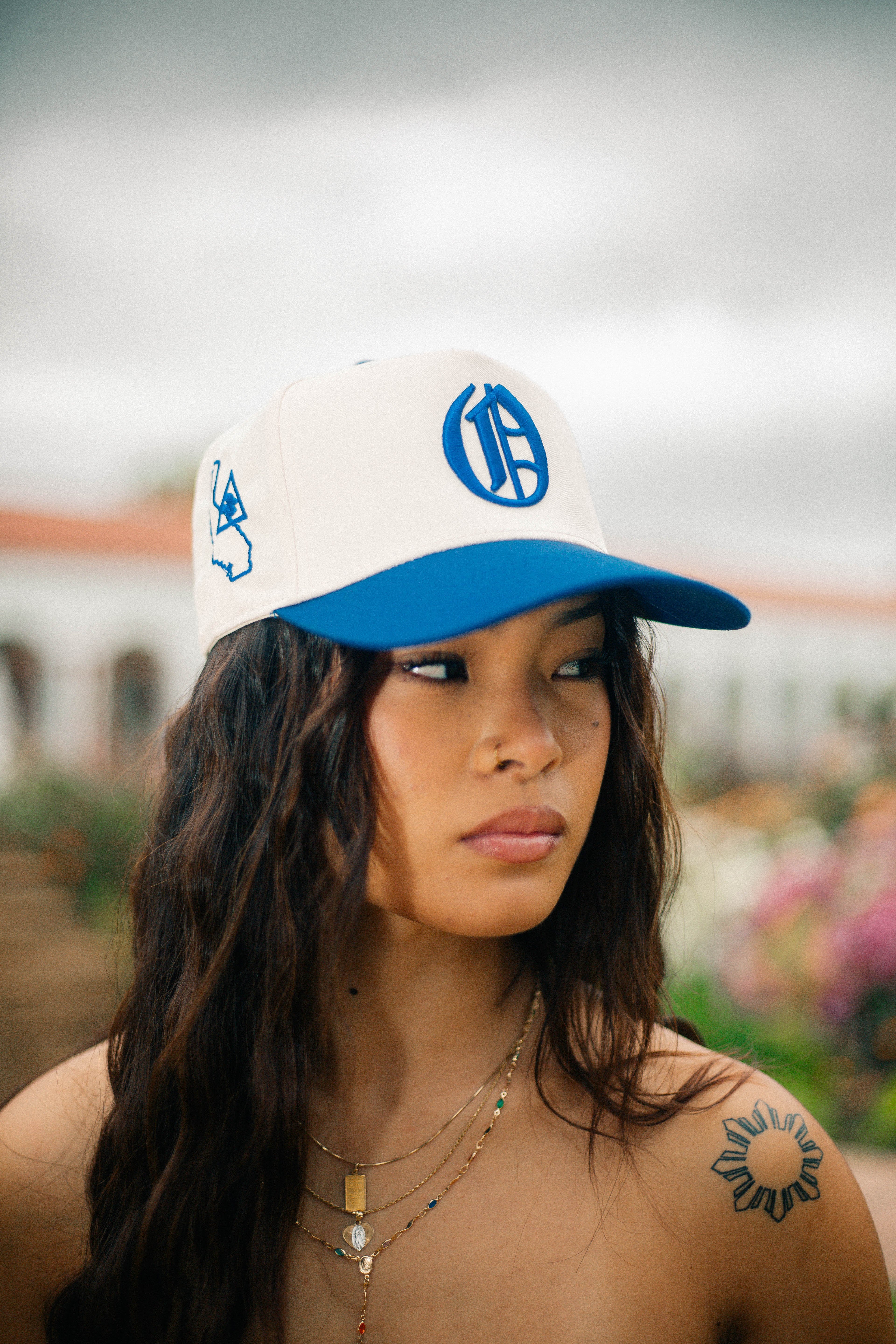 OOE Snapback Hat (Beige/Royal Blue)